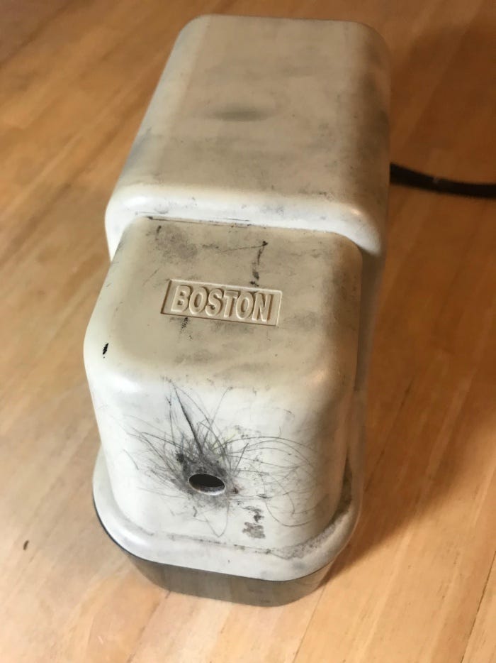 한 30년(三十年) 정도(程度) 제가 애용(愛用)한 연필(鉛筆)깍기가 있는데, 얼마전 연필(鉛筆)을 깍으려고 하는데 “걸걸걸걸...” 하는 소리가 나더니 드디어 작동(作動)이 잘 되지 않는 것을 알게 되었습니다. 대개 많은 연필(鉛筆)을 한번에 깍게 되면 기계(機械)가 과열(過熱)되어 얼마간 냉각(冷却)시켰다가 다시 쓰면 괜찮았지만 이번에는 무언가 좀 달랐습니다. 호기심(好奇心)에 연필(鉛筆)깍기를 분해(分解)해보았더니 중간(中間)에 위치(位置)한 플래스틱으로 된 큰 톱니바퀴가 너무 오래되어 여러 조각으로 쪼개졌음을 알게 되었습니다. 미국(美國)은 어떤 기기(器機)가 고장(故障) 났을 때 인건비(人件費)가 비싸서 그것를 수리(修理)하여 쓰는 것보다 그냥 새것을 사면 더 싸고 새로운 성능(性能)의 것을 구입(購入)할 수 있게 되는 경우(境遇)가 많습니다.