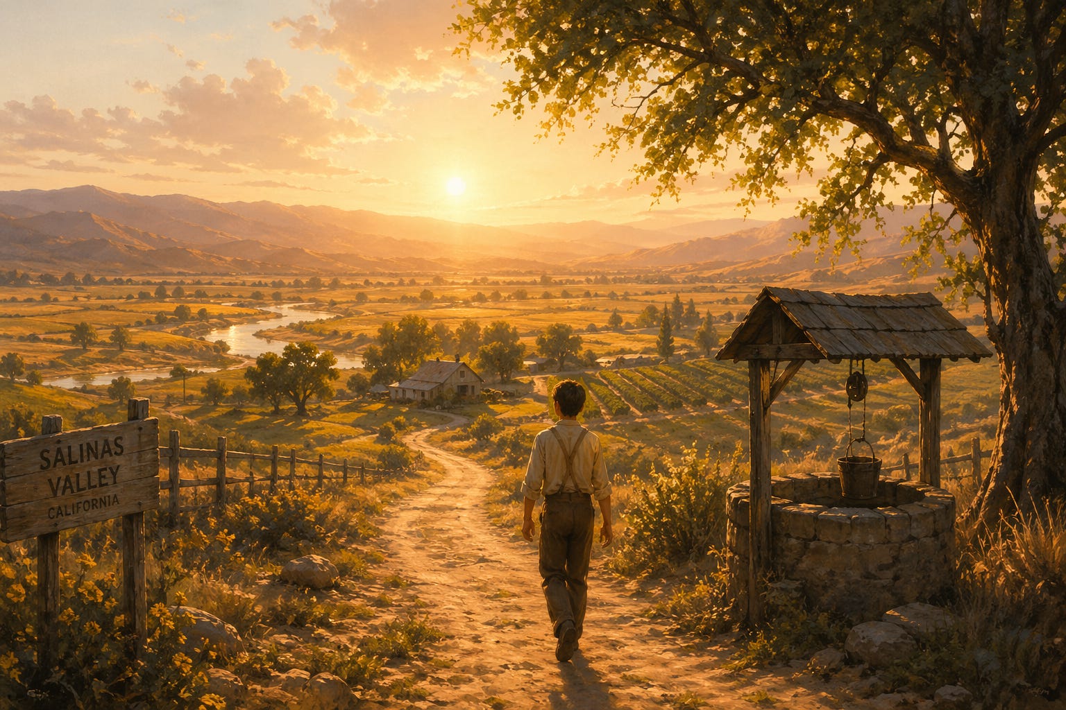 At dusk, the Salinas Valley lay in its usual stillness, yet there was something altered in the air that evening. Beneath a sky bruised red by the dying sun, a boy walked slowly along a dust-worn road. His name was Samuel.