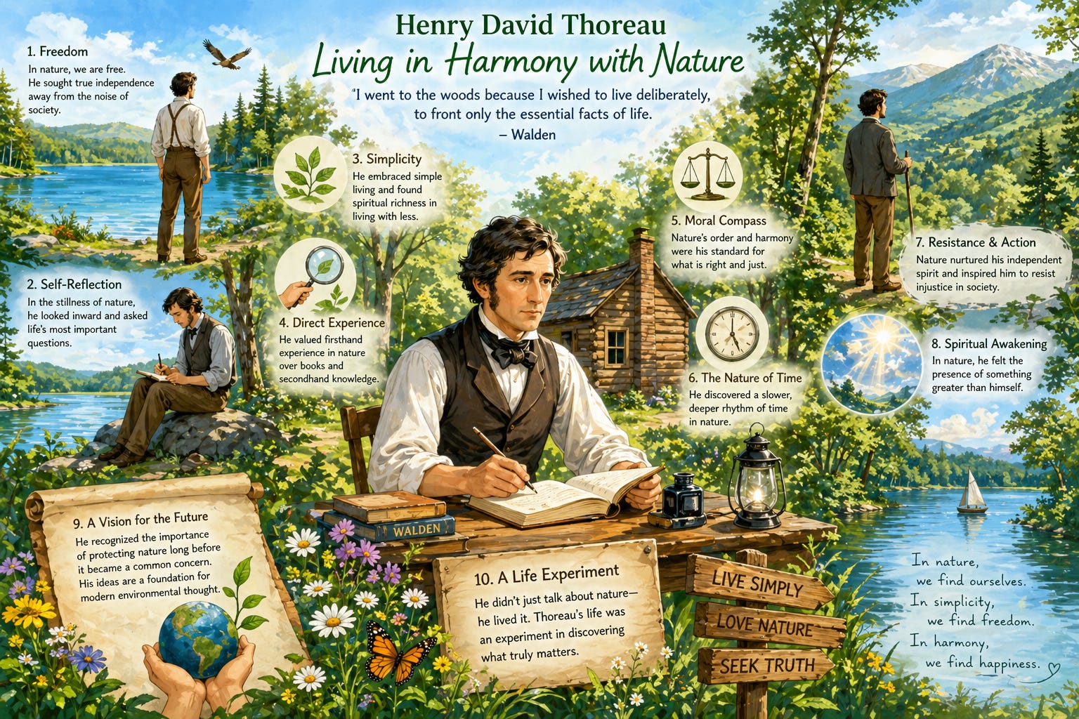 Fourth, he emphasized the importance of direct experience. Rather than relying on books or secondhand knowledge, he valued firsthand engagement with nature. For Thoreau, nature was not something to be merely studied, but to be lived and experienced.