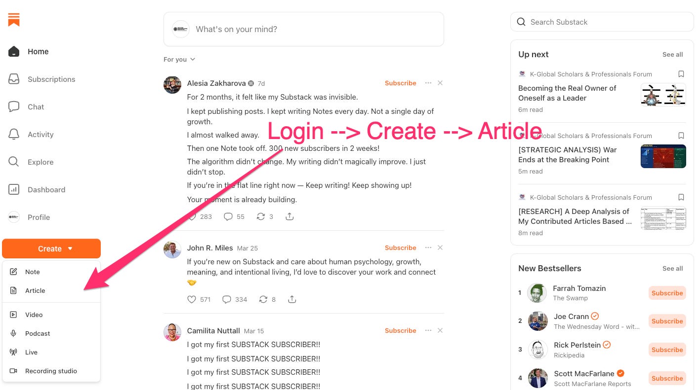 Publishing your work on the K-GSP Forum Substack is straightforward once you know the steps. This guide walks you through the entire process from login to publication.