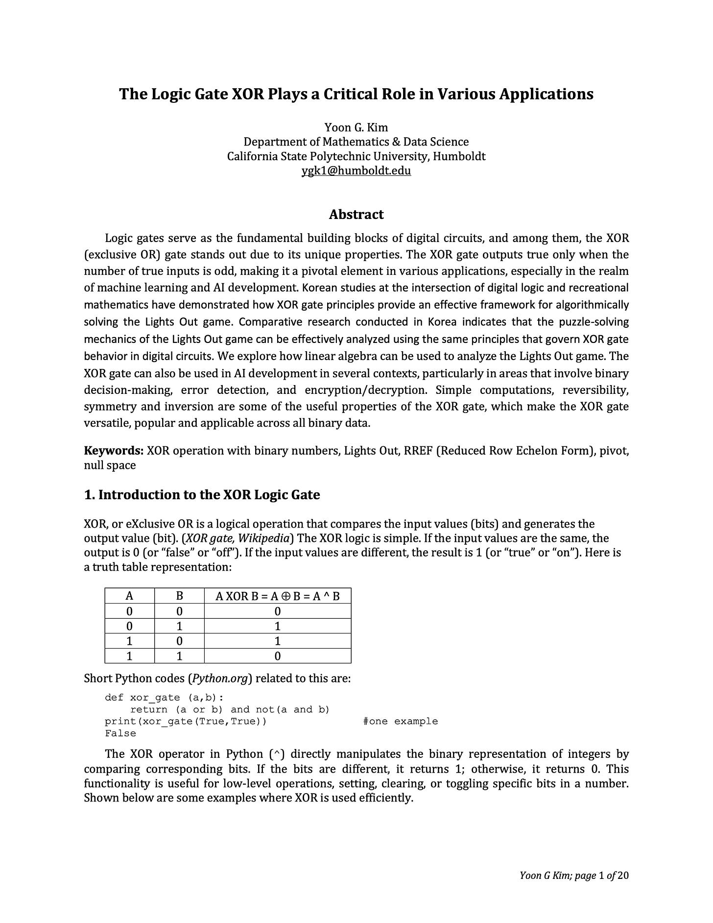 [RESEARCH] The Logic Gate XOR Plays a Critical Role in Various Applications