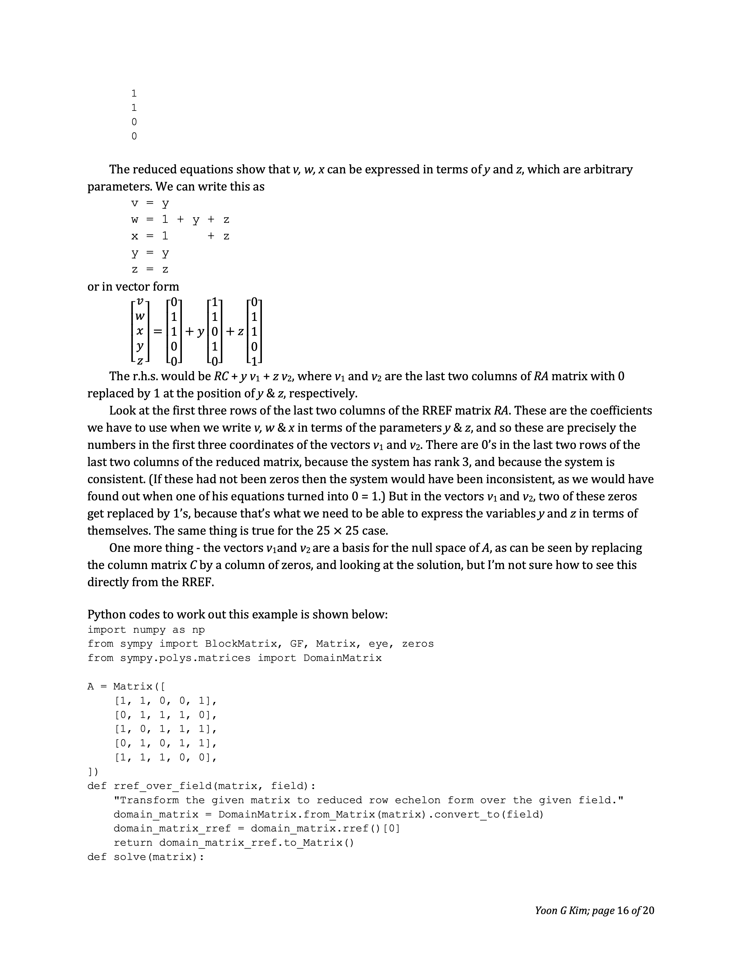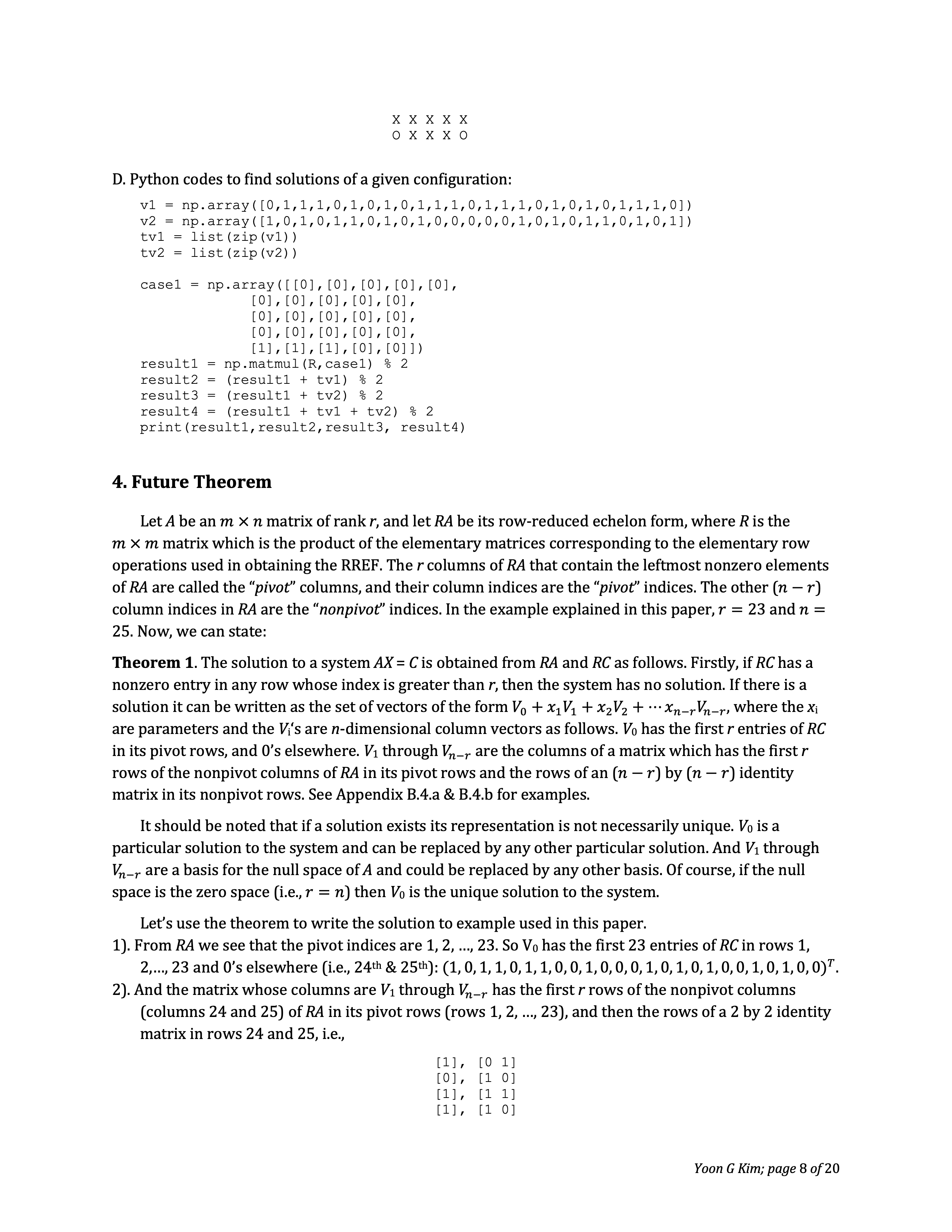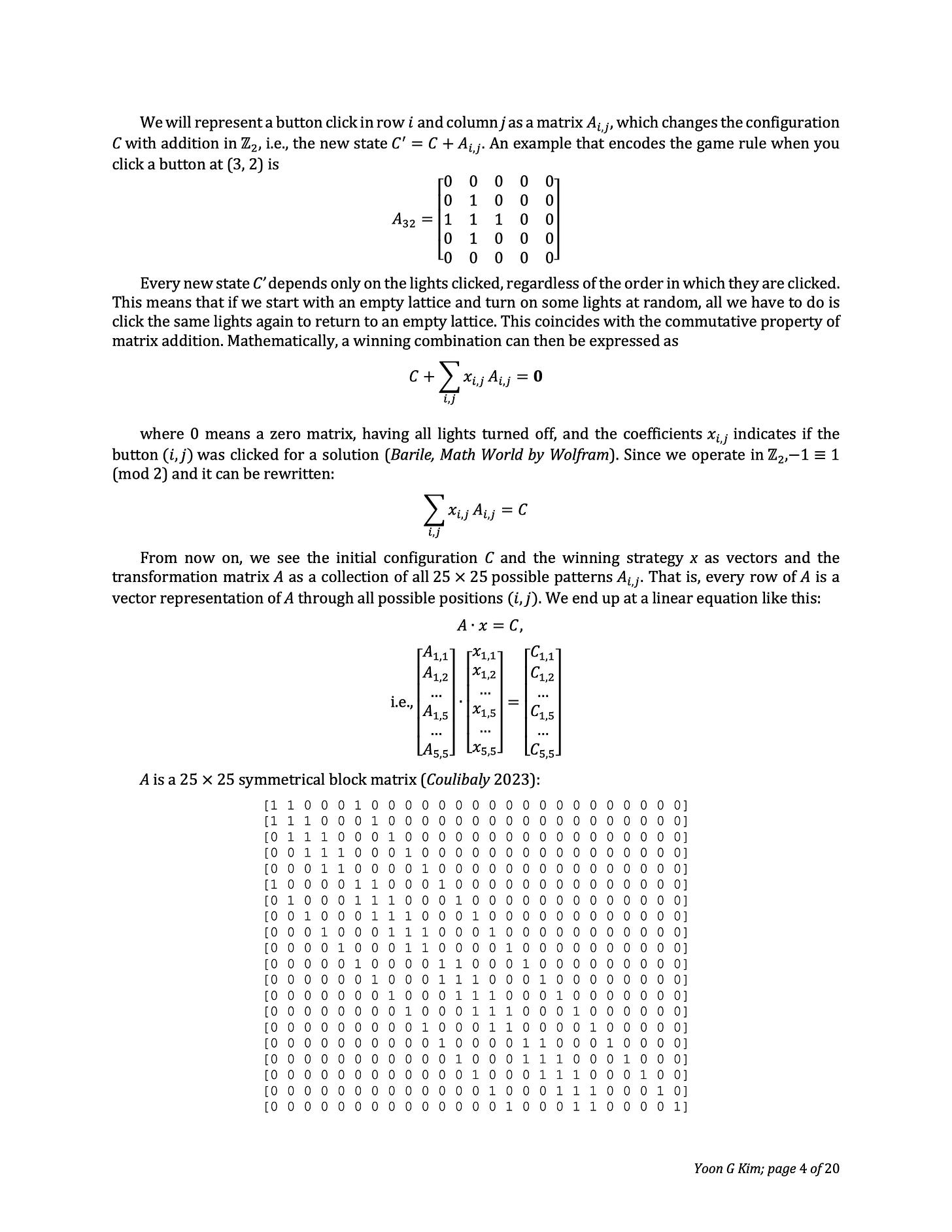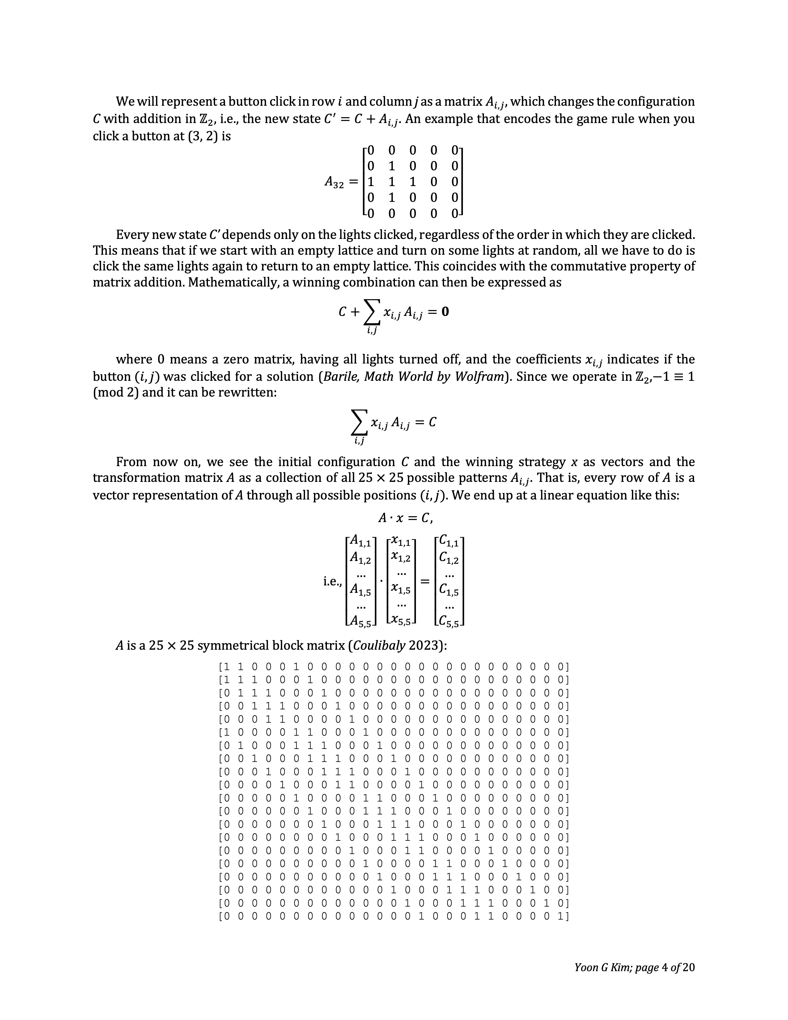 Keywords: XOR operation with binary numbers, Lights Out, RREF (Reduced Row Echelon Form), pivot, null space