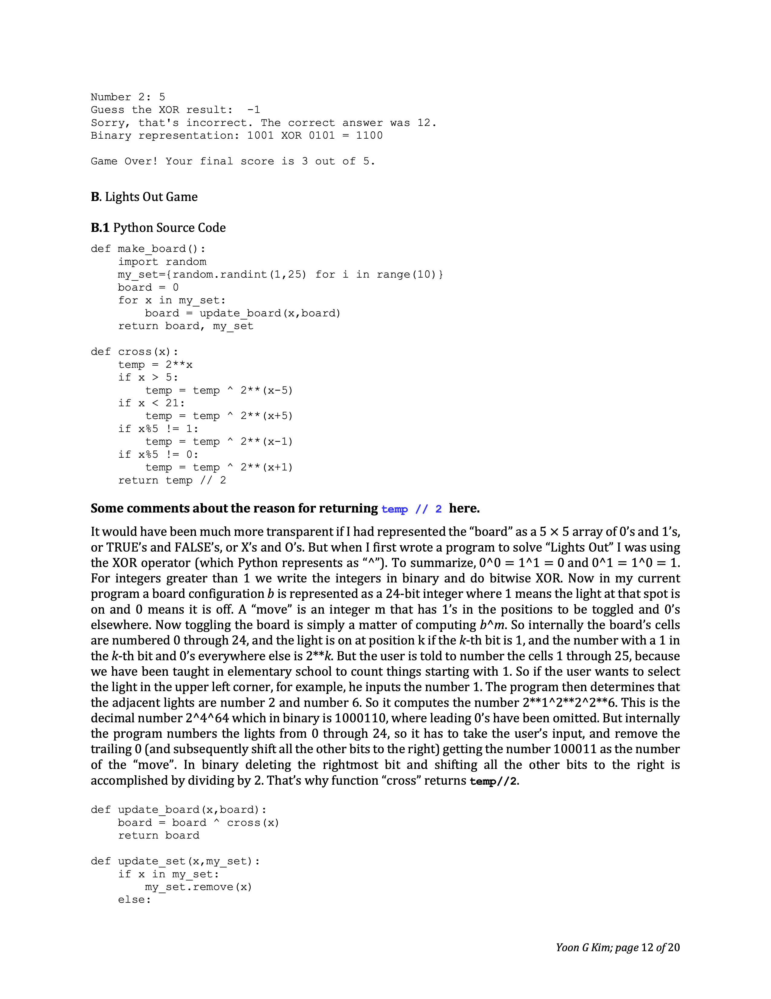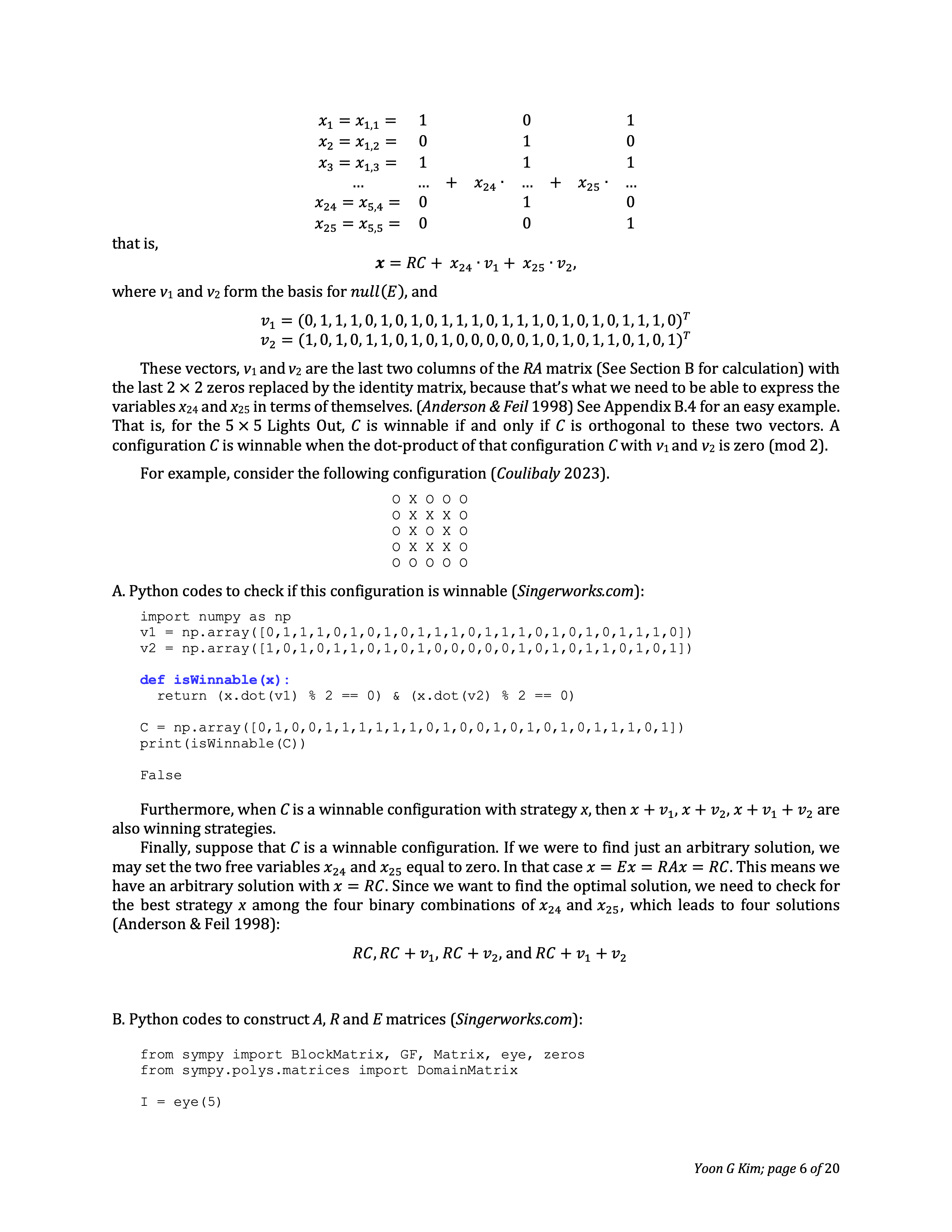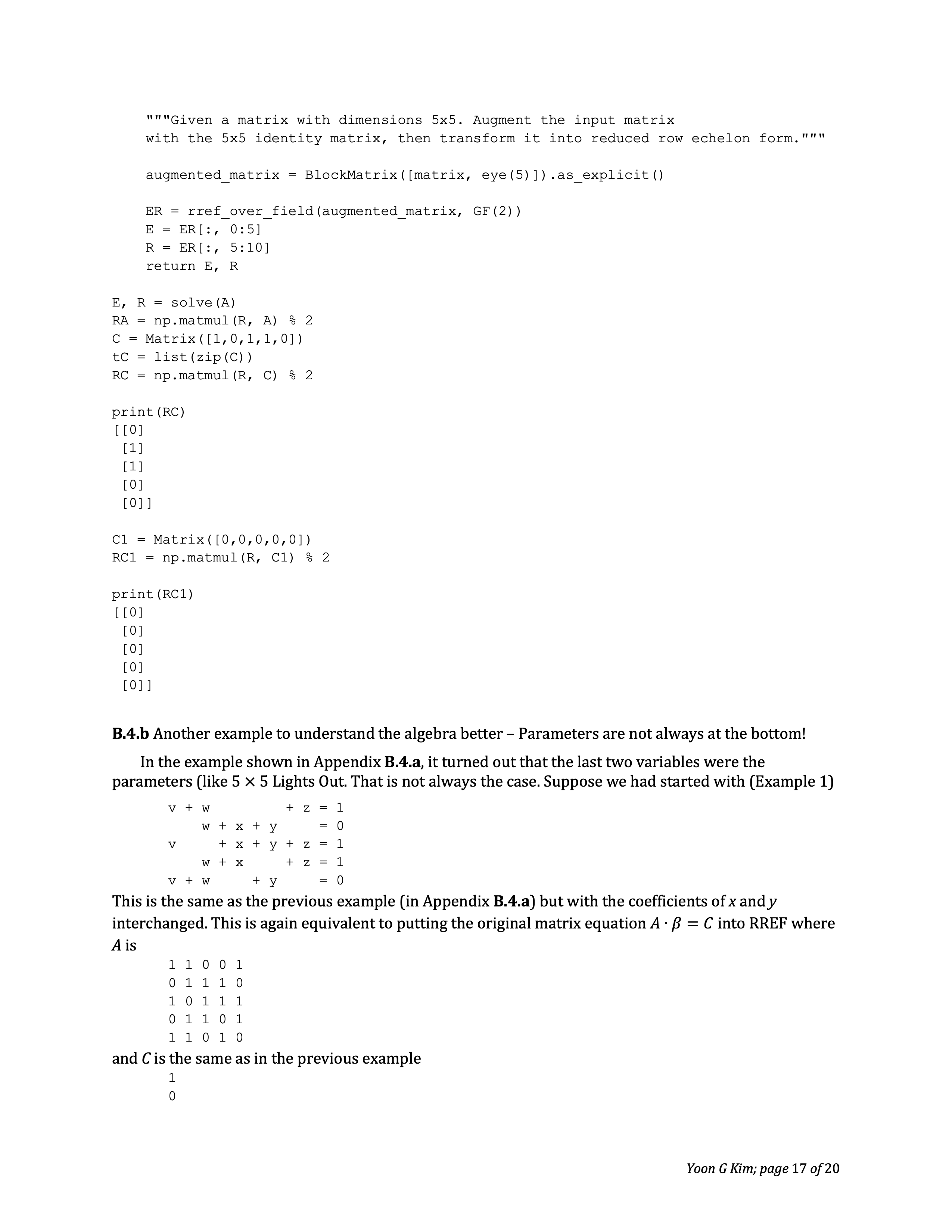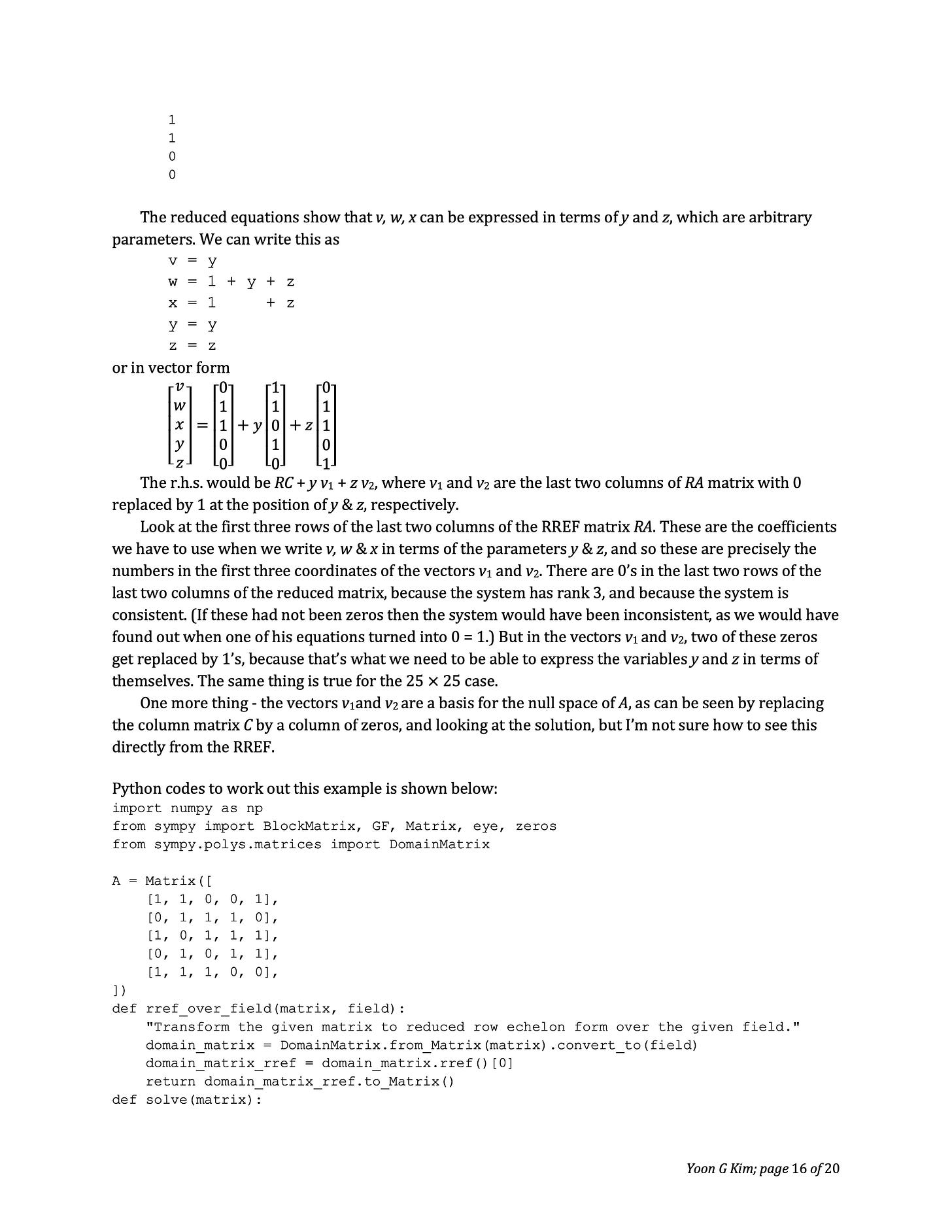 Keywords: XOR operation with binary numbers, Lights Out, RREF (Reduced Row Echelon Form), pivot, null space