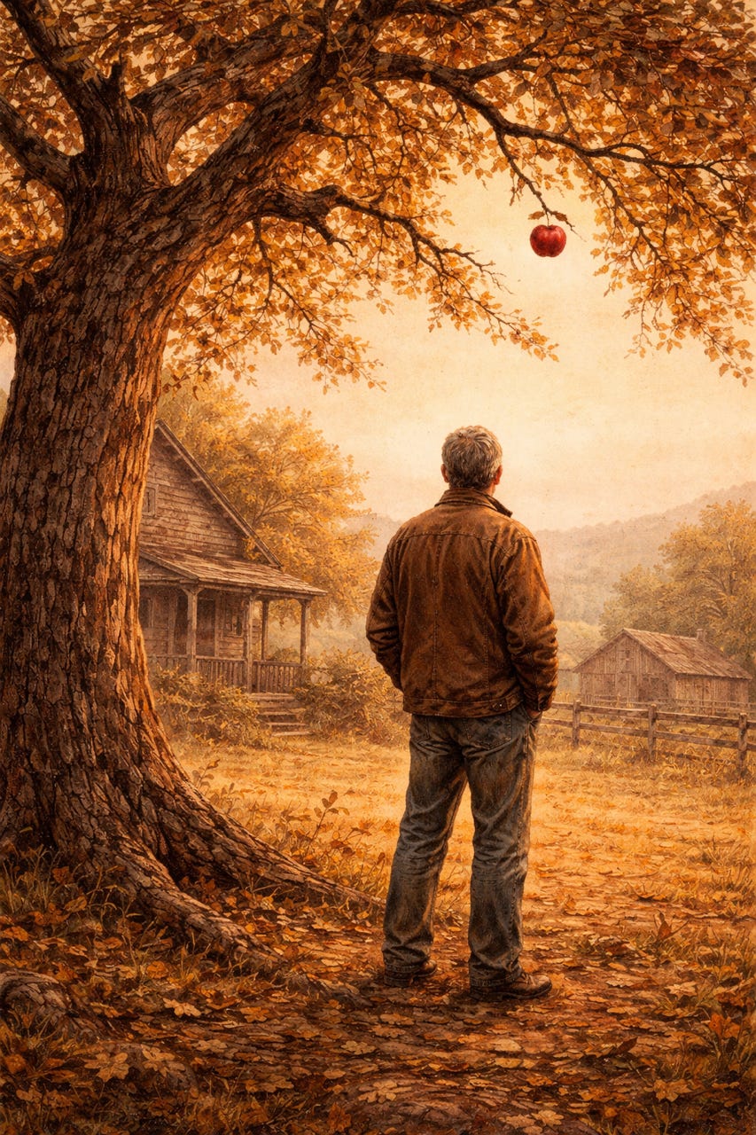 It was not much of a house anymore—just wood, weather, and memory holding each other up. Behind it, the apple tree bent slightly to one side, as if time had leaned on it for too long.