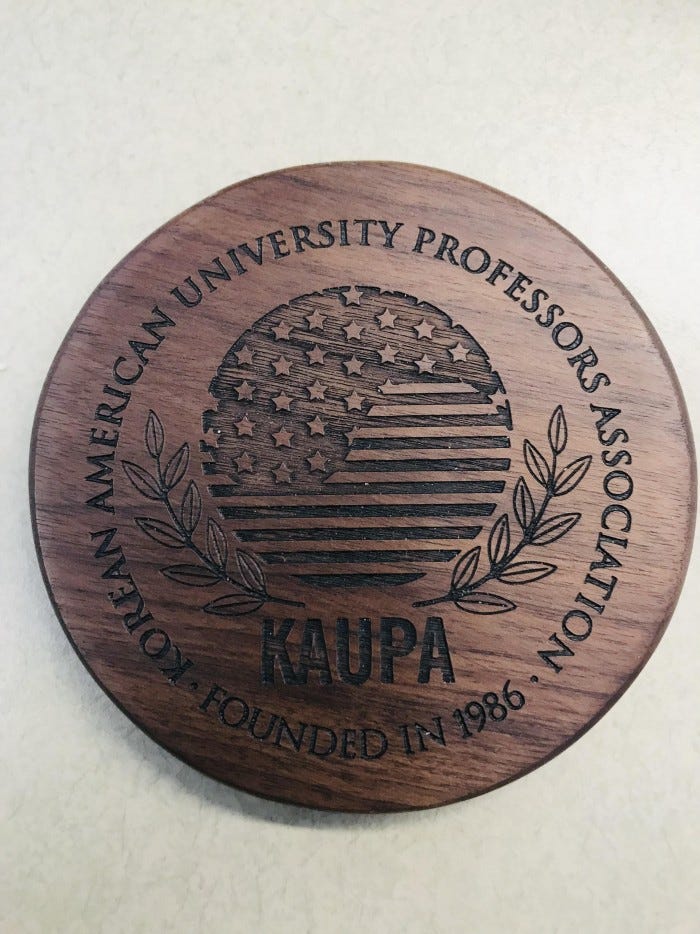 3. KAUPA Logo on Wood - Coaster & Paperweight (북미한인교수협회 공식 로고 (잔받침 및 문진 겸용)), 2021