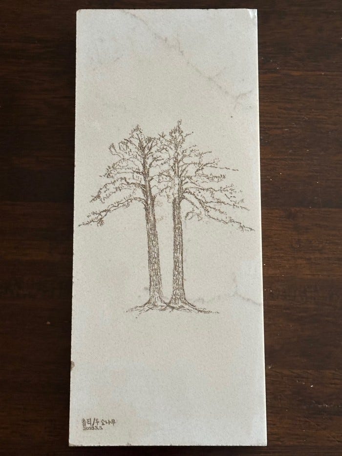 20. Two Pine Trees, 2023 (Laser Engraving on Stone: LEoS)