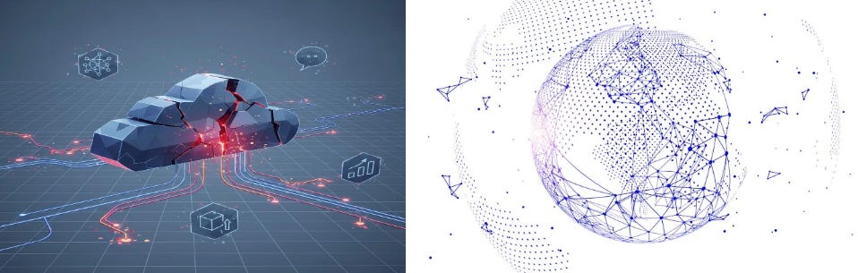 Source: Conceptual digital images of network disruption and global connectivity (educational use); composition and annotations by the author.